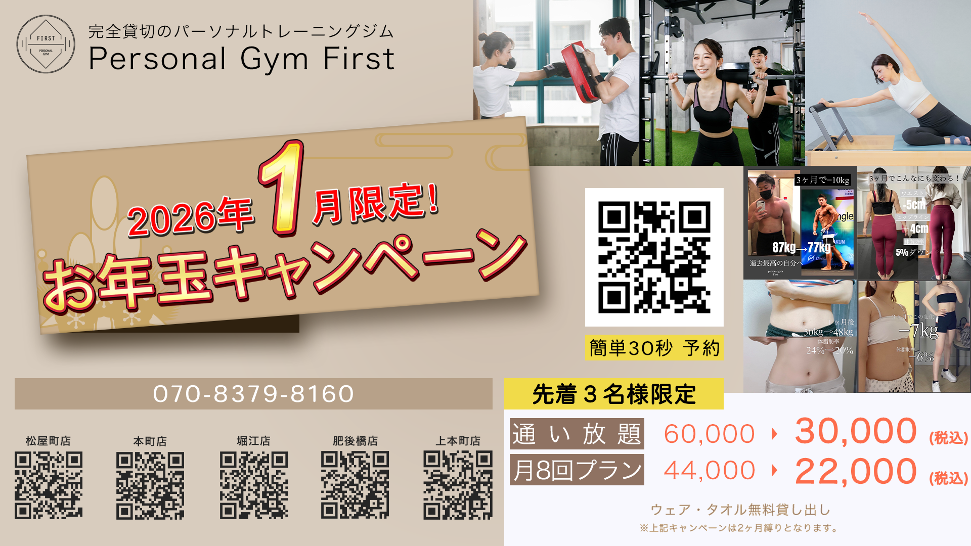 パーソナルジムFirstのお知らせを最新情報をお知らせいたします。