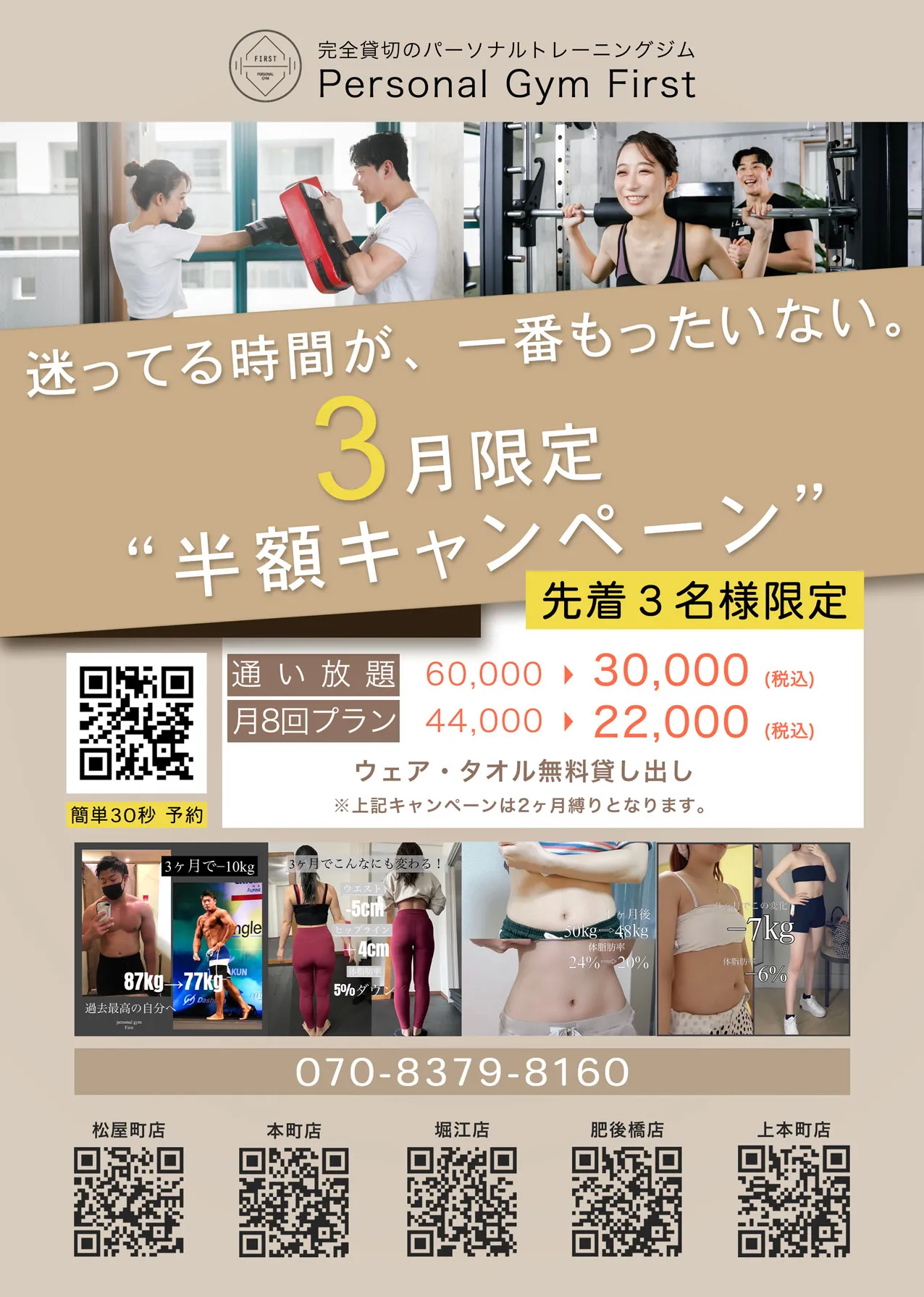 健康的に体を変えたい方、自信を取り戻したい方は、是非一度パーソナルへ。